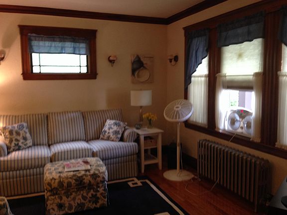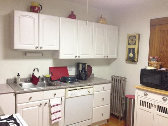 NO FEE on the Charles River, 2 BR, 5 RM apartment on the 1st floor of a two family on the Charles River, 3 blocks west of Watertown Square and bus lines. 2 bedrooms, renovated EIK with pantry, living room, dining room with built in china cabinet and one brand new bath. Refrigerator, gas stove, dishwasher, washer and dryer (in basement) Natural woodwork and hardwood floors through out; freshly painted Newer thermal windows and driveway Half of basement for storage; half of garage stall for bikes, canoes, etc. 2 porches including 1 enclosed Off street parking for 2 cars including 1 garage spot; plowing and lawn service provided. Most cats OK; may consider a dog non smokers only $2150 plus utilities avail April 15th or May 1 CLOSETS closets in both bedrooms plenty of kitchen storage space; pantry in kitchen, large closet in kitchen linen closet and broom closet in hallway large front entry closet additional storage in basement. DCR pool 5 houses down the street; buses to Harvard Square, Central Square, Kenmore Square, Waltham, Dedham, Newton and Xpress buses to downtown and south station No Smoking. Owner pays for water and sewer. Renter pays for utilities - gas and electric. Newer gas heat. Garage parking for one car, off street for the 2nd car