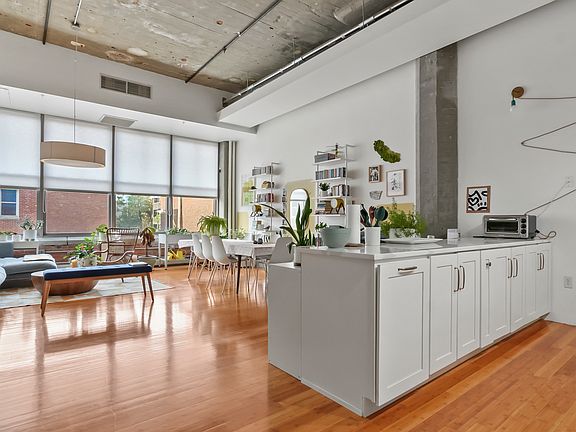 Great opportunity to rent at the 156 Porter Lofts in Jeffries Point! This spacious, bright condo is highlighted by the high ceilings, oversized windows, newly renovated kitchen, one car PARKING, and an incredible common roofdeck with skyline views! The modern kitchen features new cabinets, quartz counters, tiled backsplash, ample counterspace, stainless steel appliances with a midcentury modern fridge, and open shelving. The spacious living area allows for flexible living with many layout options and plenty of space for a formal dining area. The updated bath w/subway tiled surround, in unit laundry, central AC, and new bamboo flooring in the loft area complete this apartment. All this conveniently located steps to the Blue Line, new bars and restaurants in Jeffries Point, East Boston Greenway, Piers Park, and with easy access to Rt 1 and the Mass Pike. Professional building with on site management. Available 11/1!