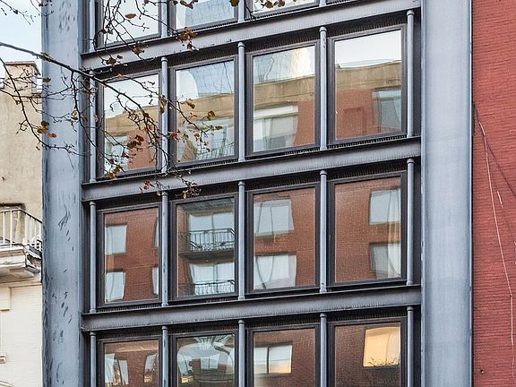 A modern marvel, this 25 foot wide Tribeca townhouse dream home offers 6 luxurious levels of open sun-flooded living space, lovely park views, a private elevator to transport you from floor to floor, and a spectacular private rooftop oasis. Designed by famed architect/developer John Petrarca who resided here, this contemporary approx. 6,800-square-foot masterpiece on charming Reade Street is as unique as Manhattan homes get. Featured in Alexander Gorlin's book, "Creating a New American Townhouse," 156 Reade Street is celebrated for its innovative elements that include a 1,100-foot underground pipe which maintains a constant 52-degree interior ground temperature all year round. State-of-the-art systems further optimize comfort throughout the entire residence, including a geothermal system that provides heat, AC and hot water, and an automatic water filtration system for clean drinking water. There's even a heated sidewalk to conveniently melt the ice and snow! Radiant heated floors, floor-to-ceiling windows, panoramic southern, western and northern views, and impeccably-appointed living/entertaining spaces with the finest finishes and fixtures are among the other distinctive details. Beyond the elevator and formal foyer awaits a breathtaking master glass staircase ascending from the first to top floor. Two spacious bedrooms, two bathrooms and a playroom occupy the second level. Floor three is reserved for your huge light-filled master suite with a wall of southern windows overlooking the tree-lined street. Entertain grandly on level four with a divine Bulthaup kitchen, open dining room with stretching views of historic Tribeca, and dramatic living room with a double height ceiling, massive windows and wood-burning fireplace. Located on the fifth floor is an expansive home office/den, laundry and bathroom complete with a steam shower. The sixth floor features a study/den/bedroom with floor to ceiling glass windows which open up to your glorious rooftop terrace, complete with an enclosed pantry/kitchen offering spectacular triple open exposures of downtown. The perfect respite for enjoying a bit of relaxation or hosting guests. Finally, there is a potential upper terrace with 360 degree views.