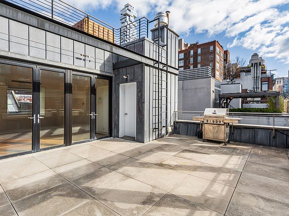 A modern marvel, this 25 foot wide Tribeca townhouse dream home offers 6 luxurious levels of open sun-flooded living space, lovely park views, a private elevator to transport you from floor to floor, and a spectacular private rooftop oasis. Designed by famed architect/developer John Petrarca who resided here, this contemporary approx. 5000-square-foot masterpiece on charming Reade Street is as unique as Manhattan homes get. Featured in Alexander Gorlin's book, "Creating a New American Townhouse," 156 Reade Street is celebrated for its innovative elements that include a 1,100-foot underground pipe which maintains a constant 52-degree interior ground temperature all year round. State-of-the-art systems further optimize comfort throughout the entire residence, including a geothermal system that provides heat, AC and hot water, and an automatic water filtration system for clean drinking water. There's even a heated sidewalk to conveniently melt the ice and snow! Radiant heated floors, floor-to-ceiling windows, panoramic southern, western and northern views, and impeccably-appointed living/entertaining spaces with the finest finishes and fixtures are among the other distinctive details. Beyond the elevator and formal foyer awaits a breathtaking master glass staircase ascending from the first to top floor. Two spacious bedrooms, two bathrooms and a playroom occupy the second level. Floor three is reserved for your huge light-filled master suite with a wall of southern windows overlooking the tree-lined street. Entertain grandly on level four with a divine Bulthaup kitchen, open dining room with stretching views of historic Tribeca, and dramatic living room with a double height ceiling, massive windows and wood-burning fireplace. Located on the fifth floor is an expansive home office/den, laundry and bathroom complete with a steam shower. The sixth floor features a study/den/bedroom with floor to ceiling glass windows which open up to your glorious rooftop terrace, complete with an enclosed pantry/kitchen offering spectacular triple open exposures of downtown. The perfect respite for enjoying a bit of relaxation or hosting guests. Finally, there is a potential upper terrace with 360 degree views.