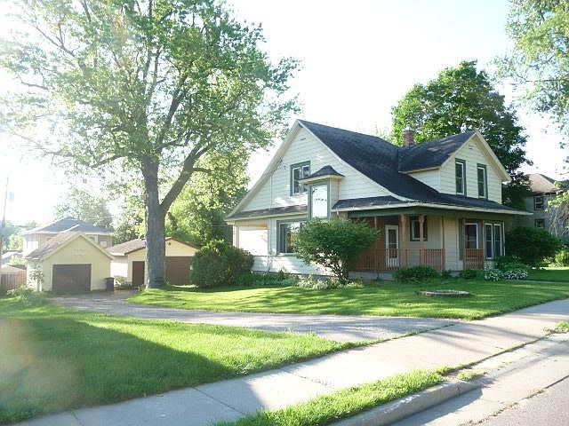 Affordable 4BR/2BA classic 2 Story home offers a convenient location! Find original hardwood floors through most of the home! Nicely sized living room boasts hardwood floors, original woodwork, walkout to front porch and arched doorway to family room! Dining room features the original hardwood flooring & woodwork, plus walk-out to the back covered deck. Family room on the main floor with hardwood floors also offers a lighted ceiling fan, bay window, French doors with arched doorway to living room. Main floor bonus room can be used as an office and adjoins the half bath. Kitchen provides vinyl flooring, lighted ceiling fan & walkout to back deck. Find all four bedrooms with big closets and the full bath with tiled floors on the upper level. Appliances consist of the range, exhaust hood/fan, refrigerator, washer, dryer and owned water softener. Foyer has hardwood floors and closet. Metal exterior; electric water heater; natural gas boiler heat. 24x24 detached 2 car and 16x24 single car garages with vinyl siding, cement floors and asphalt driveway. Property will be Sold As-Is. Ellsworth Main Street: South on Chestnut Street to property on Left.