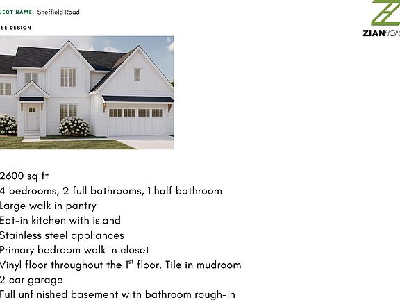 New construction by Zian Homes. This 4 bedroom home sits on almost 1 acre with a large backyard featuring views of mature trees. LVT throughout the main floor, large kitchen with island and walk-in pantry. The primary suite upstairs includes a luxurious ensuite bathroom and walk-in closet. The full unfinished basement includes a rough-in for an additional bathroom. Modifications or customizations of the current floor plan available. Agent has ownership interest in land.