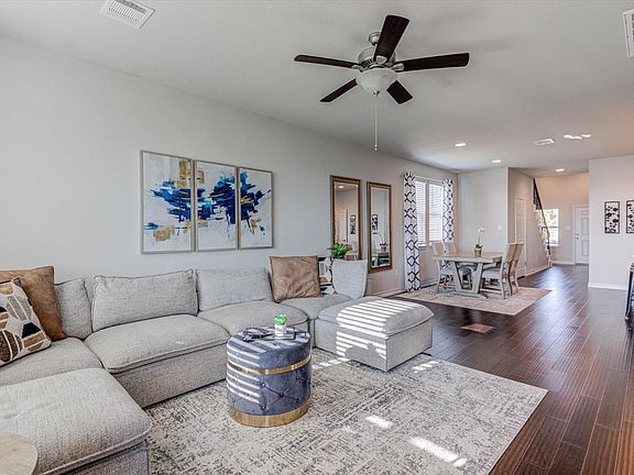 This home in Sunfield is situated on a premium larger lot, updates galore with wood floors and quartz countertops through out. Primary bedroom is on the main level with an open concept of living and dining. Upstairs you have a bonus space or additional living room with the 2 good size secondary bedrooms. The home is across the street from a park and around the corner from the lazy river. Original owner has kept it in great condition. Restaurants and shopping are only a minutes drive. Easy access to the highways and country roads.