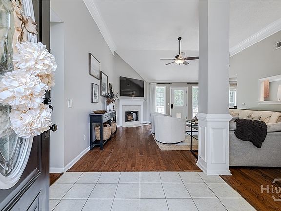 Welcome to 156 Silverton – a beautiful, brick single-family home nestled in one of Pooler’s most desirable and convenient locations! This move-in ready home features an open and inviting floor plan with gorgeous hardwood flooring throughout the main living areas and vaulted ceilings that enhance the sense of space and light. The spacious living room is perfect for entertaining or relaxing, complete with a cozy wood-burning fireplace . The kitchen is both functional and stylish, offering a breakfast nook, tile backsplash, plenty of cabinet space, and a large walk-in pantry – perfect for all your storage needs. The primary suite is a true retreat with vaulted ceilings, a separate sitting area, a dual vanity, tiled walk-in shower, soaking tub and a walk-in closet.