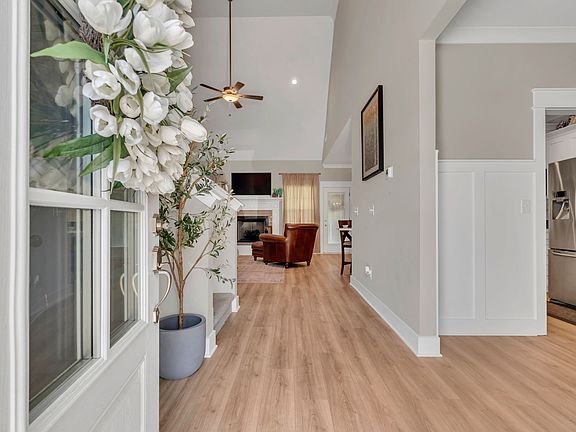 Welcome to this beautifully maintained 4-bedroom, 3-bath home featuring a spacious bonus room and a thoughtful layout with 2 bedrooms on the main level. You'll love the natural light, open floor plan, and elegant touches—from the wainscoting and hardwood floors to the soaring ceilings and neutral finishes. The kitchen offers ample counter space, modern appliances, and flows seamlessly into the living and dining areas—perfect for everyday living and entertaining. The main-level primary suite provides a relaxing retreat, while the additional bedrooms and large bonus room upstairs offer flexibility for guests, office space, or play. Additional highlights include a tankless hot water heater, generous yard, and charming curb appeal—all nestled in a quaint neighborhood close to shopping, dining, and schools. Upgrades include: Wainscotting, no carpet downstairs, quartz countertops and vinyl fence!