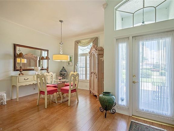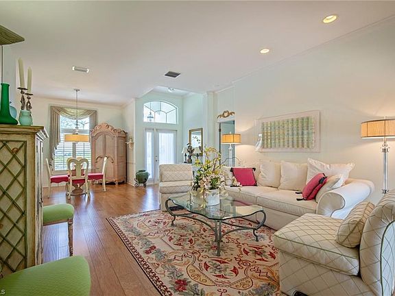 H.13321 - NEW ROOF! Nestled in a park like setting of only 18 single family homes is this charming 3 bedroom 2 bath home which lives larger than its square footage and comes turnkey furnished! The functional floor plan features a formal living room, formal dining room and a spacious kitchen which opens to the family room. This home has an abundance of windows and sliders which brings a lot of natural light into the home. Wide plank wood flooring was recently installed in the living room, dining room, family room and kitchen, plantation shutters throughout, crown molding, an over-sized screened in lanai with lush tropical landscaping and 2 car garage. Electric storm shutters on the lanai and front door and accordion shutters on all other windows! The Sellers have contracted to have the roof replaced which will be completed in the next 30-45 days. the quarterly fee includes cable, high speed internet, landscaping, irrigation water, exterior pest control, Vineyards master association fee, and professional management. Vineyards Country Club offers a variety of membership options (membership is optional) and just completed a new fitness and wellness center.
