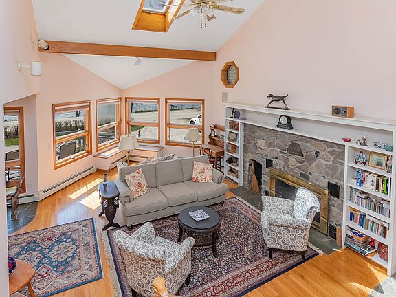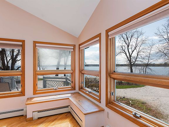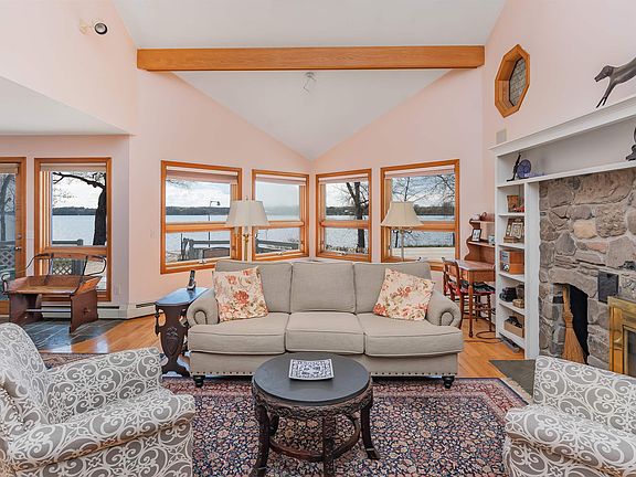 A magnificent waterfront property that was architecturally designed to take in the beauty of Lake Champlain. The open concept main floor has a wall of West facing windows and doors. The skylight in the vaulted ceiling cascades natural light down into the great room and onto the stone fireplace with built in bookshelves. Grab one of your favorite reads and relax in one of multiple window seats as you soak in the sun. The kitchen/dining room is perfect for entertaining centered around a large island. The upstairs is a split level with three bedroom and two full baths. All bedrooms have vaulted ceilings. The primary bedroom has a spectacular balcony overlooking the lake and an en suite with a jet tub, separate shower, walk in closet and a double vanity. There are many recent upgrades including a four season heat cable system for the waterline and a new detached garage. The Alburgh Dunes and Alburgh Golf Links are both located a short distance away. Go boating, fishing, swimming or golfing. Come check out all this property has to offer. Showings begin May 5th at 10am. CUFSH
