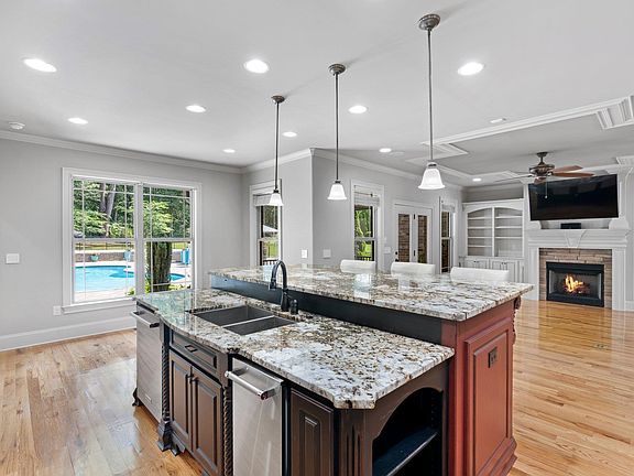 Welcome home to 156 Stone Gate Drive, a stunning residence in the highly sought-after gated community of Stone Gate in Duncan. This luxurious home built by award-winning custom builder Tim Snow and Avery Construction offers 5 bedrooms, 4.5 baths, a 4-car garage, and just over 3000 sqft of meticulously designed living space. Your favorite part of this home will be the breathtaking pool designed by Artistic Pools, featuring self-cleaning, an app-controlled pump, and multicolored lighting. Your inground pool has a massive patio for lawn chairs, grilling, and tables. You can jump into the pool on day one! In this quiet neighborhood, your evenings will be met with the glow of lightning bugs, butterflies, and the relaxing rhythms of nature. Driving up, the grand stone archway invites you through the bold and beautiful front double doors into this luxurious custom-built home. An open floor plan seamlessly combines comfort and sophistication. The grand entrance welcomes you with expansive living spaces, perfect for entertaining or relaxing with family. There's even a small cove for your four-legged friends. The gourmet kitchen is a chef's dream, featuring exquisite granite countertops, KitchenAid appliances, and a spacious pantry that provides ample storage and prep space. This kitchen island with bar seating is more than just a functional piece; it's a statement of luxury and convenience. It transforms the kitchen into a vibrant and engaging space where memories are made. Adjacent to the kitchen, the dining and living areas flow effortlessly. The main floor boasts a luxurious primary suite with a spa-like en-suite. This room features abundant natural light, a tray ceiling, crown molding, and dimmable lighting to adjust the ambiance. The primary bathroom includes double sinks, granite countertops, a jetted tub, and a pristine walk-in shower. An additional bedroom and a versatile office space on the main level offer convenience and flexibility for your lifestyle needs. Upstairs, you'll find two more well-appointed bedrooms and a flex fifth room that can serve as a bedroom, bonus room, or weight room. This flexible space provides endless possibilities for customization, catering to your family's unique needs. Since its purchase in 2017, the home has been enhanced with $200,000 upgrades, ensuring the utmost comfort and modern living. The beautifully landscaped backyard, equipped with a dual water meter system for efficient irrigation, creates a serene oasis perfect for relaxation and entertaining. Inside, enjoy sophisticated LED lighting, an advanced HVAC system, app-controlled music, and high-quality floor coatings. Experience luxury and tranquility in this secluded, quiet neighborhood where every detail has been carefully crafted for your enjoyment.