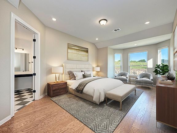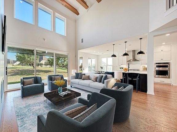 Set on almost an acre backing to a tranquil greenbelt, this refined Ashton Woods residence in the coveted Cortaro community offers an exceptional blend of space, privacy, and elevated design—all within the acclaimed Dripping Springs ISD and just minutes to schools, HEB, the Hill Country Galleria, and popular vineyards and breweries. Thoughtfully crafted across two levels, the home features 4 bedrooms, a dedicated study, formal dining, 3.5 baths, an expansive upstairs game room, and a media room. Soaring vaulted ceilings with exposed beams crown the luminous great room, where sliders open to a covered outdoor living space. Oversized transom windows invite serene natural light throughout, creating a seamless connection to the surrounding landscape. The chef’s kitchen is equally impressive, anchored by a substantial center island, framed in custom shaker cabinetry, and appointed with premium granite surfaces, stainless appliances, a butler's pantry with cafe counter, and a charming breakfast nook with built-in seating. The main-level primary suite is a peaceful retreat overlooking the backyard and greenbelt beyond. It offers a custom walk-in closet and spa-like bath with separate vanities, a freestanding soaking tub, and a glass-enclosed shower. A guest bathroom and in home laundry room round out the main floor. Upstairs you can really spread out with 3 bedrooms, 2 full bathrooms, a game room, plus an awesome media room with theater seating and potential for a 5th bedroom conversion. Outdoor living is equally impressive with both front and rear covered patios—ideal for enjoying Hill Country sunsets or game day gatherings. The covered back patio features remote control retractable screens, plus there is ample space to design your ideal outdoor oasis, add a pool, and more. The spacious three-car garage provides room for storage or a workshop. A rare opportunity where design, comfort, and setting align—schedule your showing today.