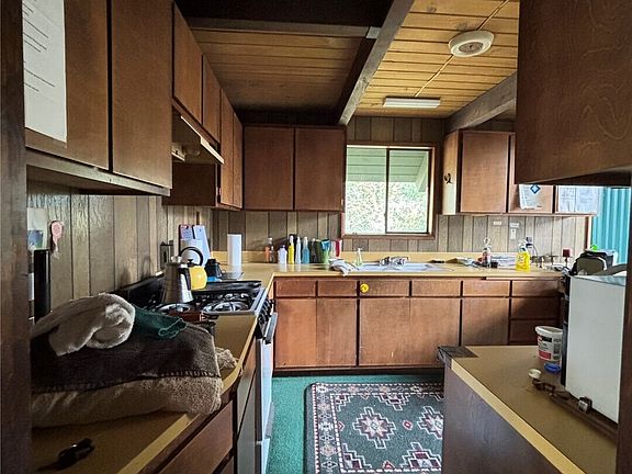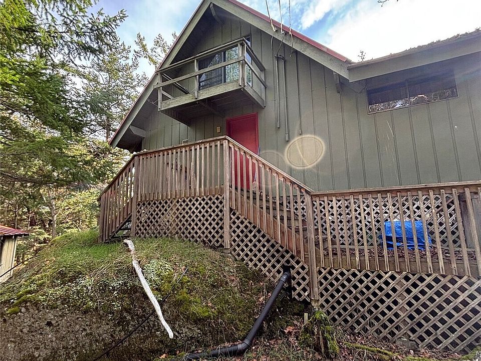 Tucked among lush greenery on a private 0.56-acre lot, this 3-bed, 1-bath home offers 1,038 sq ft of inviting living space that feels like a cozy tree house. Multiple wood decks create indoor-outdoor living, and a fireplace adds warmth to the bright, open interior. A 128 sq ft garage provides extra convenience, and an almost-new 2024 4-wheeler is included (used only to access property). Also included is a 3,484.80 sq ft special-use hangar lot just off the main airstrip, offering added ease and flexibility for travel to and from the island. The community features a beach, airstrip, and boat launching area, with a desirable south-facing orientation overlooking historic Roche Harbor. This tranquil escape blends comfort and coastal beauty.
