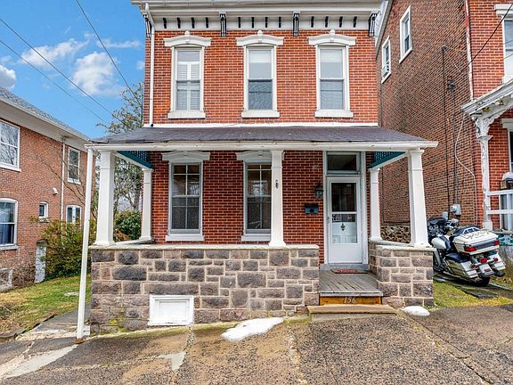 Are you looking to get onto the real estate ladder then this is the perfect place to start. This 1900s detached brick home has charm and character but with modern conveniences including central air, public sewer & water along with the added benefit of off-street parking which is a huge bonus in town. The main floor offers hardwood flooring in the living and dinning rooms with traditional high ceilings and large windows allowing the space to be flooded with natural light. Stepping down from the dining room you enter the addition; providing a large kitchen which features a charming wall of exposed brickwork, lots of windows and a door to the back patio and flat back yard. There is also a convenient powder room on this level and access to the basement. As you head upstairs to the second floor dont forget to notice the brand new carpet on the stairs and in all 3 bedrooms on this level. The primary bedroom which is part of the addition, also offers a wall of exposed brickwork plus 2 closets, 2 skylights and a built-in book nook. The other 2 bedrooms have lighted ceiling fans. The family bathroom has ceramic tile floors and walls and provides a claw-foot tub with shower, single vanity and neutral utilities. The 3rd floor is home to the 4th bedroom which could be used as a home office/hobby room as it offers a large amount of space with 2 big windows, 2 closets along with eve storage options. The basement is ready for all your storage needs and houses the hot water heater, washer, natural gas dryer and oil tank. The back yard is nice and flat with a walkway leading to 2 off-street parking spots with access off the alley behind for your convenience. This great location offers access to many shopping centers, the Philadelphia Premium Outlet Mall, local and chain restaurants and major routes but provides the feel of an olde world neighborhood.