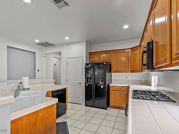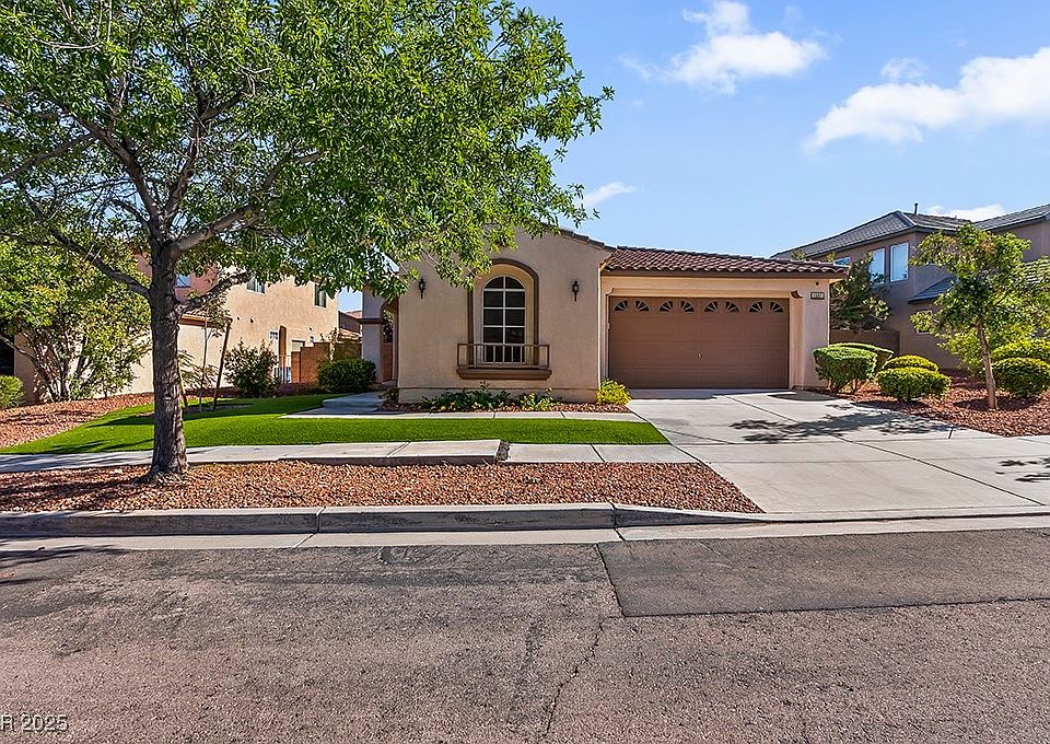 This single-story, three-bedroom, three-bath Summerlin home offers over 2,100 sq. ft of living space just minutes from Downtown Summerlin. Highlights include a circular interior entry, formal living room, bright kitchen with dining area, family room with fireplace, spacious primary suite featuring walk-in closet, ensuite bath with soaking tub and separate shower, dual sinks, lighted vanity, a large backyard featuring a covered patio, mature landscaping, rose garden, and lemon tree—ideal for entertaining or relaxing. In addition to its inviting living spaces and desirable location, this home provides an attached two-car garage, and a laundry room with shelving. Enjoy the comfort of central air and heating throughout the year, as well as energy-efficient windows for added convenience. Whether you're hosting gatherings or seeking a peaceful retreat, this property combines practicality with charm, making it an ideal choice for those looking to enjoy all that Summerlin South has to offer.
