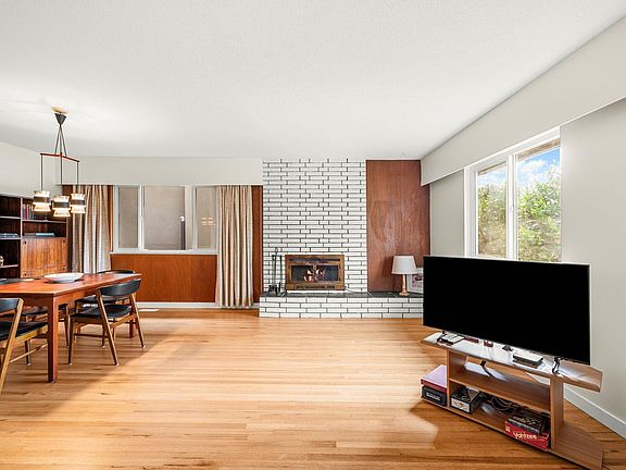 Upgrades have been done since photo were taken, wallpaper has been removed on main floor and walls have been painted a lovely white. Carpets removed to reveal pristine hardwood floors. Deck & new stairs overlook Doran Park, known for its superb mountain biking & hiking trails, & backyard provides direct access. Interior features include mid-century built-ins, lighting fixtures, cool brick fireplace, eat-in area in kitchen with built-in high table that folds down, dual-pane windows, hardwood floors, full copper plumbing, 3 bedrooms/1 bath on main floor, large living room south-facing picture windows letting in tons of natural light. Basement w/suite possibilities, w/direct carport access, 1 bed/1 bath. Well situated close to Lynn Valley mall, library, Lynn Canyon Park & suspension bridge.