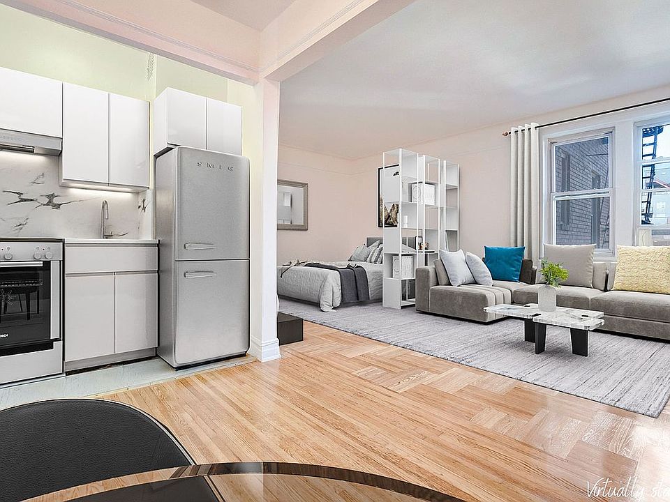 Welcome to this attractive prewar studio with high ceilings in a prime area. This bright and inviting space in a classic building offers large windows that let in plenty of natural light, showcasing the original hardwood flooring and impressive 9-foot ceilings. Recently refreshed, the studio features a spacious foyer perfect for dining or setting up a home office. Plus, two large hallway closets provide ample storage.
