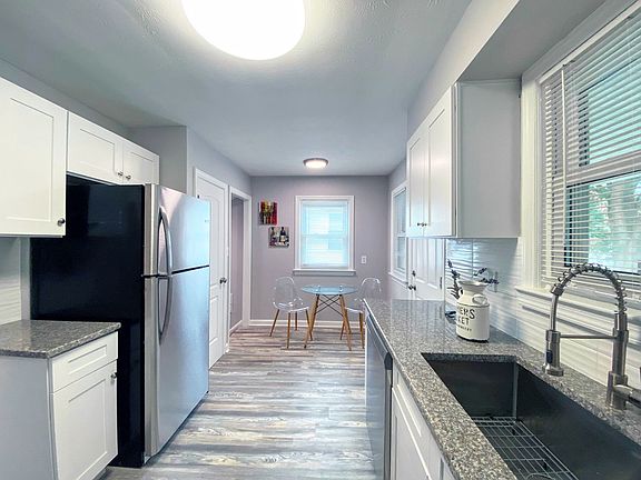 New granite countertopsLarge basementVaulted ceilingsCompletely updated bathroomNew built-in cabinetsEat-in areaBluish accent wall