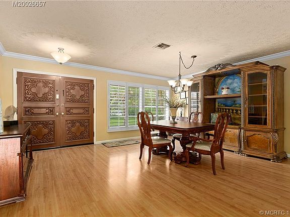 Enjoy the view of the golf course without any HOA fees. As you enter the double doors, your eyes will be drawn to the wall of windows showcasing the gorgeous pool & open golf course view. Plenty of room to entertain family & friends. Cozy up to a fire while relaxing in the spacious family room or enjoy the outdoors on the large patio. The kitchen offers ample working space & features tile countertops & stainless steel appliances. The grand master suite also features a wall of windows allowing you to soak up the view. Updated shower, double sinks & two walk-in closets. On the other side of the home, you'll find two oversized bedrooms and an updated bathroom. Oversized 2 car garage & a generous laundry room. Conveniently located in North Stuart. No HOA! Zoned for Martin County Schools.