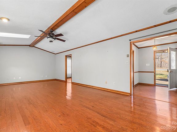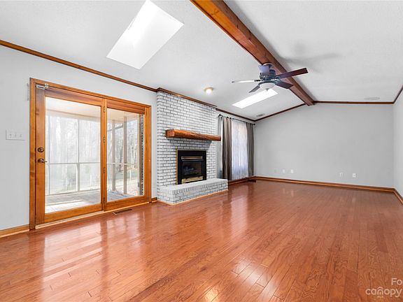 This all brick ranch is charming & move in ready!  Just over half an acre with no HOA.  Wood flooring throughout with tile in bathrooms and kitchen area.  No carpet. The living area features a vaulted ceiling, skylights, and an exposed wood beam with a floor to ceiling white brick fireplace featuring gas logs and a wooden mantle. The kitchen features stainless appliances with gas double ovens and a gas cooktop.  There's plenty of cabinets for storage and a counter height bar with extra seating next to the dining/breakfast space.  The primary bedroom features dual closets and has an en suite bath with makeup vanity.  Screened porch overlooks the private backyard which features a playset area that is fenced. Large basement storage/shop area accessible via an overhead door out back. Perfect to store your lawn equipment and/or atvs.  Side load, 2 car garage.  Roof is less than 5 years old.  This one is a must see!  Schedule your showing today!