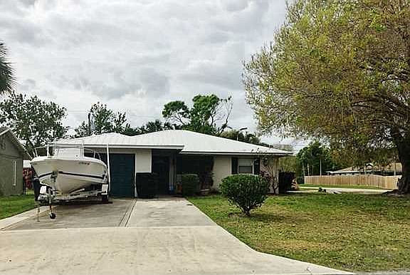 Great value for this 3 bedroom, 2 bath home in old Palm City! Home offers granite in kitchen, crown molding, tile & laminate flooring. Situated on a large corner lot with 2 separate driveway access. Screened porch with shed in back yard for extra storage space. Perfect space for a first time buyer! Roof and A/C 2011. Don't miss out on this opportunity!