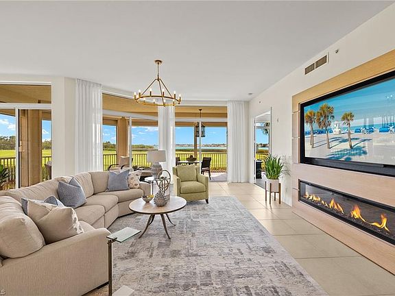 Welcome to 1560 Star Point Lane in the highly coveted enclave of Admirals Watch of Windstar on Naples Bay. Enter the lobby of this 4-unit boutique building to the elevator which opens directly into your 3 Bedroom, 3.5 Bathroom tastefully updated home in over 2600 square feet of living space under AC. Open-concept living area with walls of glass affording stunningly gorgeous western views of golf course, Naples Bay, Port Royal, Royal Harbor and sunsets. Sprawling living room with linear fireplace opens out to screened-in lanai with expansive views seamlessly blending indoor/outdoor living. A true chef's eat-in kitchen replete with shaker cabinetry, contemporary white quartz countertops, GE Monogram appliances, breakfast bar, dining area plus a sitting room with custom millwork accent wall and built-in desk area. Master Suite oasis featuring large bedroom with wall of glass overlooking the bay, dual walk-in closets with custom built-ins plus an en-suite bathroom with walk-in shower, soaking tub, dual vanities and separate water closet. Split floor plan with 2 additional guest suites each with en-suite bathrooms and views of the preserve. Full size laundry room plus a convenient powder room. Oversized 2-car garage. Gorgeous resort-style pool and spa. Deeded boat slip #7 behind the building which can accommodate up to a 30 foot boat and is just a mere 7 minutes out to the Gulf of Mexico. Windstar on Naples Bay is the only gated golf community with Tom Fazio designed 18-hole golf course that offers direct bay access, a private beach plus dock on Keewaydin Island with boat shuttle plus a full service 73-slip deep water marina. Newly renovated clubhouse (separate membership) with multiple dining areas with stunning views of Naples Bay and Port Royal, billiards room, 6 Har-Tru tennis courts, bocce courts and a state of the art fitness center slated for 2026 completion. Preferred location just a short drive via car, bike or golf cart to downtown's 5th Avenue known worldwide for its fine dining, shopping and beaches. Situated in the vibrant Bayshore Arts District, Windstar is walkable to Naples Botanical Garden and Naples Pickleball Center home of the pickleball US Open. Easy access to I-75, Naples and Fort Myers airports. This truly exceptional home has been thoughtfully updated with modern features perfect for today's paradise living. If you are looking to buy the quintessential, resort style low-maintenance home in Naples look no further!