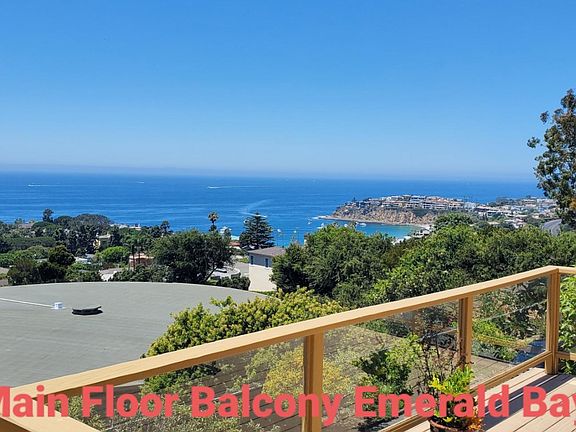 Perfectly located in North Laguna, 210 degree Ocean Views on ALL three levels. Not too high to have a long drive up and not too low for a flat view and PCH noise. 10 minute walk to the sand. Enjoy Panoramic Ocean and Coastline views of Emerald Bay and white water from this spacious three-level home in North Laguna. Five bedrooms plus an office on a single loaded street of only five homes. Secluded and very quiet street. The main floor features remodeled kitchen, living room with fireplace, dining room, den, powder room with a flat BBQ ocean view area on the deck. The upper level offers an ocean view Master Bedroom opening to the deck, ocean view master bathroom, three other bedrooms, two other bathrooms, and large laundry room. This level opens to a flat yard and has a Drive-up access with a gated one or two car parking space. The lowest level offers another specious bedroom, full bathroom and an large office- connected to the rest of the main house inside but it does offer a separate entrance and was once a mother-in-law apartment. Big decks and views from all three levels, flat yard space, and fruit trees on the upper level, two car garage. and space for 2 cars in the driveway and plenty of street parking. Lots of storage space. Close to all North Laguna Beaches, and minutes to downtown restaurants and shops. Central vacuum system on all levels. Brokers welcome; Owner will pay 3% commission to procuring Broker.