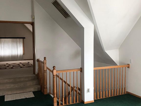 Very nice upper 2 bedroom. Vaulted ceilings. Tile Kitchen and bath. Whirlpool tub. Nice deck and one car garage parking. Stove and frig. included. Coin operated washer and dryer in basement.