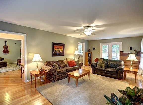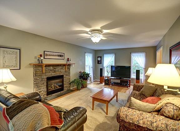 Custom built 4 bedroom home on a private 2.43 acre wooded lot including a separate apartment/in-law suite!! Beautiful eat-in kitchen is complete with granite countertops including center prep island, tons of pantry space, and SS appliances! Spacious family room offers cozy stone gas fireplace, ceiling fan, and access to rear deck! Separate suite includes living area with gas fireplace and built-in shelving, bedroom with walk-in closet, and 2nd kitchen with clean white appliances and dining area!! Upstairs, you will find 3 spacious bedrooms, including vaulted master with walk-in closet and private bath with dual vanity sinks! Bonus recreational room over the garage provides endless possibilities and provides access to large walk-in storage space! Other highlights include 2 new heat pumps, conditioned pull down attic and crawl space for extra storage, new carpet, paved driveway, rear deck, low maintenance vinyl siding, covered side porch, detached storage, and amazing oversized 2 car garage with 9 foot door that is great for entertaining. An stunning home that won't last long!!
