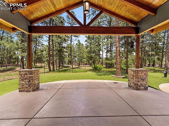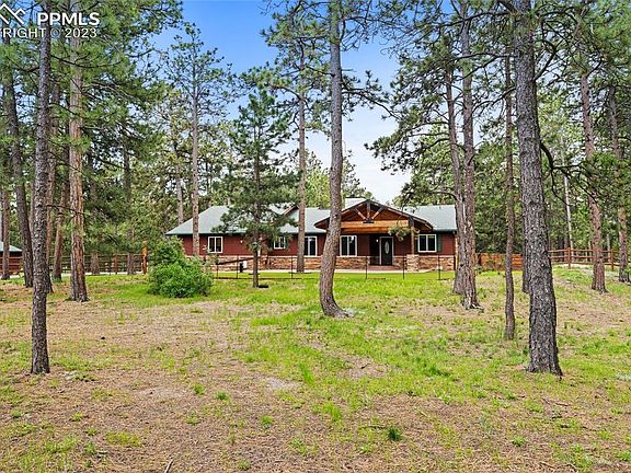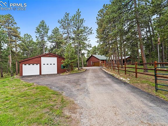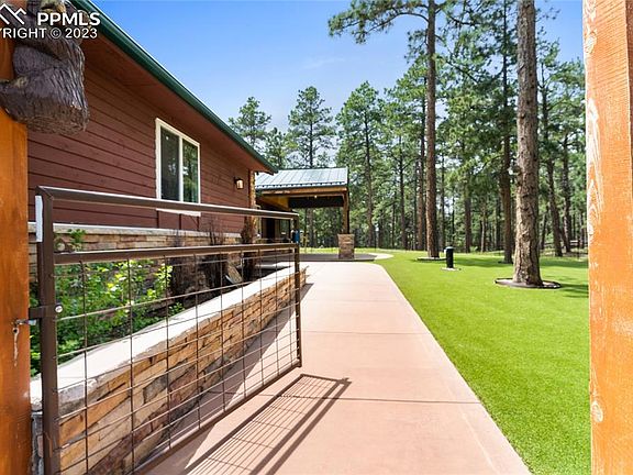 Five acres of serene wooded privacy in Eldorado Acres, just three minutes from 83 and nine minutes from I-25. You get the best of country living while being just minutes from town and amenities. The five acre lot is beautifully landscaped, a  fenced rear yard and front yard (zoned for horses)! A newly landscaped front yard with turf, covered porch and stamped concrete where you can relax under the tongue and groove ceiling and enjoy the peace and quiet offers a safe place for smaller pets. The lot has been fire mitigated while a large detached garage and shop come complete with a wood stove, A/C , RV bay, is fully insulated with spray foamtwo bay garage area and new garage doors. The home itself features three bedrooms with a primary ensuite bathroom that is fully remodeled with a soaking tub, free standing shower, walk in closet and double vanity. The large kitchen area features a gas stove, pantry, island, and bar area seating. The property also features a partial walk out basement with its own patio. A gas line is already in place for you to build your outdoor grilling area just outside the walk out dinning/kitchen area.