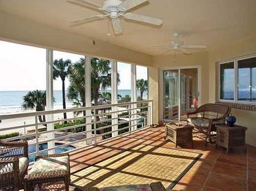 Exquisite Gulf front living. Shows extremely well. professionally decorated. Perfect for family that loves the beach and entertaining. Private guest suite, Fully equiped 2nd kitchen off pool, Extra large lot, very private, oversized parking area. Media room, den, elevator. Kitchen is state of art. Wolf stove and stainless venting. Custom finishes thru out. Storm shutters, Spotless. Home 100% covered with shutters / compliant with Citizen''s hurricane shutter requirement.