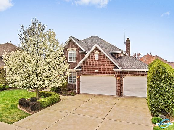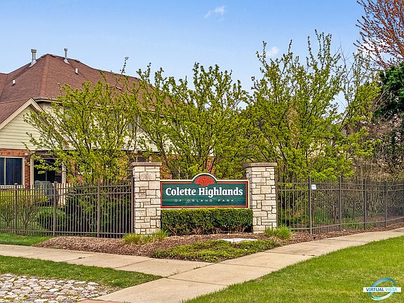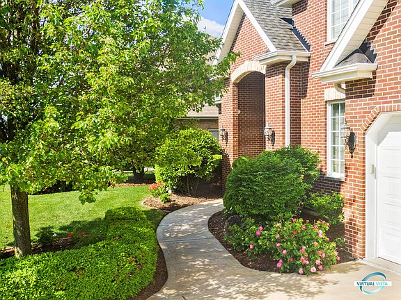 SPARKLING CLEAN CUSTOM BUILT, FULL BRICK 2-Story home with walk-out lower level located in desirable Colette Highlands. CLOSE TO METRA AND CENTENNIAL PARK & POOL. Upon entering the grand 2-story foyer you will notice many upgraded finishes throughout this gracious home. Glass French doors with a transom window open to the private office flanking the foyer. This meticulously maintained home features 2 staircases with access from the foyer and kitchen, along with an open staircase leading to an expansive walkout lower level. Architectural columns, and gleaming hardwood floors accent the Living room and Dining room. The pristine hardwood floors continue into the kitchen, 2 staircases and second floor hallway. The stunning kitchen boasts custom 42" Maple cabinetry offering an abundance of storage, granite countertops, large Island with prep sink, custom Tuscan-style travertine backsplash, large walk-in pantry, and Stainless Steel KitchenAid appliances including a double oven. The breakfast area has room for a large table and extends into a turreted sunroom surrounded by windows. Enjoy sunset views from the second highest point in the neighborhood. Custom Plantation Shutters adorn the windows in the kitchen, sunroom, family room, master suite, 4th bedroom and hall bath. Relax in the spacious family room near the gorgeous brick and limestone fireplace. First floor laundry room is equipped with shelving, a storage closet, and front loading Whirlpool Washer & Dryer. Upstairs the tranquil, master suite has 2 large, separate walk-in closets, a spa-like master bath with a jetted tub, separate shower, custom cabinetry with double vanity and neutral tile floors. 2nd and 3rd bedrooms share a Jack and Jill full bath with custom cabinets and dual vanity. The 3rd bedroom offers a media center in the closet and is suited for a study or game room. Wake up to the vaulted ceilings and arched windows accenting the 4th bedroom. The exterior features include maintenance free aluminum clad windows along with FULL BRICK-TOP TO BOTTOM. The professionally landscaped yard features beautiful foliage for all seasons with an underground sprinkler system. You will LOVE the HUGE LOW MAINTENANCE WRAP-AROUND TREX DECK. The spotless walk-out basement opens to a newly sealed, stamped concrete terrace and walkway to the front. The basement is plumbed for a bath, and ready for your finishing touches. This home is equipped with a top of the line SECURITY SYSTEM featuring a high def. camera system, upgraded motion detectors and glass break detection on windows with direct connection to fire and police. Includes Natural gas grill with turn on from inside and outside. EXTRA FEATURES INCLUDE: Custom Millwork, ALL rooms wired for fans, Bullnose drywall corners, Lightning Arrestor, extra large HEATED GARAGE, BLOWN-IN INSULATION IN CEILING AND ALL WALLS FOR SOUNDPROOFING AND WARMTH and more. OWNERS THOUGHT OF IT ALL. DON'T MISS THIS SPOTLESS ONE OF A KIND HOME!