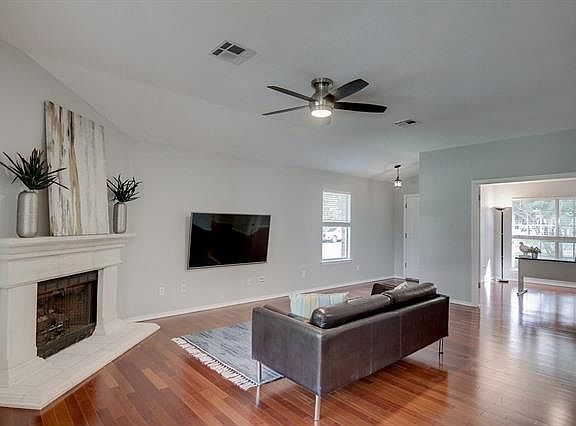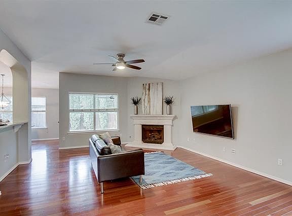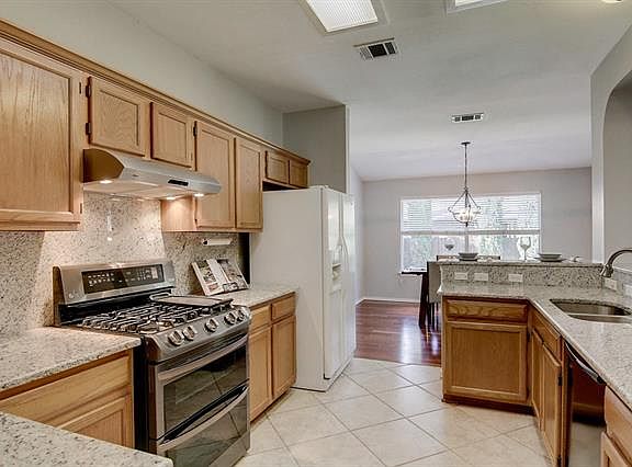 Copy/paste link for video tour: bit.ly/15600SambucaTour. One-story beauty on a corner lot in N.Austin's Willow Run! Located just 1/2 mile to the recreation center w/ easy access to Mopac, I-35 & I-45, this move-in ready 3BR offers a spacious open floor plan w/gleaming wood floors, fresh paint & upgraded stainless steel appliances. Fridge, washer & dryer will convey! Secluded master suite w/dual vanities, jetted tub & walk-in closet. Study could be 4th BR. Well-sized backyard w/extended patio for grilling.