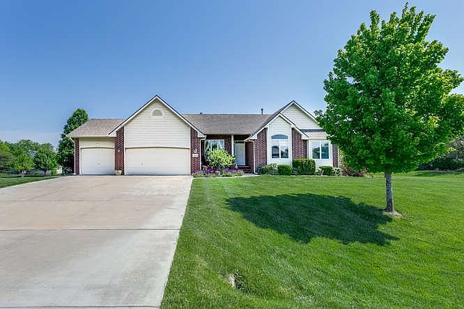 Welcome to Reece Farms... Country in the City*Spectacular One Owner Ranch Features Over An Acre of Beautiful Lush Lawn (Sprinkler on Well) & Trees Trees Trees*No Neighbors Behind You*Enjoy the Covered Deck, Patio Space w/ 2 Entertaining Areas & Sport Court w/ B. Ball Goal*Fantastic Kitchen w/Eating Bar + Eating Space and Desk*Formal Dining Room with Beautiful Hardwood Floors*Living Room w/Extra Large Windows*Enjoy the Two Way Gas Fireplace Between the Kitchen & Living Room*Master Suite w/Decorative Coffered Ceiling & Bay Window, Walk-In Closet With Built-In Ironing Board*Master Bathroom w/Jetted Tub & Separate Shower & Double Vanity*Full Walk-Out Basement w/ Family Room with a Stone Fireplace to Cozy Up To*Wet Bar*BR 4 and Full Bath+ Unfinished Area Could be Finished for Office*Tons of Storage*Cement Storm Shelter*3 Car Garage*Goddard School District, the kids can walk to Eisenhower*This Lies Bugner Built Home is Here Today... Gone Tomorrow. Seller has paid off the specials so no added cost to the buyer. LIST OF IMPROVEMENTS MADE âÂEUR¢ Solid surface counters in kitchen âÂEUR¢ New neutral paint on main âÂEUR¢ Smudge-proof stainless appliances kitchen aide dishwasher with utensil rack and new garbage disposal 2015 âÂEUR¢ New carpet throughout 4 mo ago âÂEUR¢ New onyx zero entry shower with glass doors and crown modeling with bench and lifetime warranty 6 mo ago âÂEUR¢ Ironing board MBR closet âÂEUR¢ New hot water tank 2016 âÂEUR¢ Sliding pull out drawers in kitchen âÂEUR¢ FRES