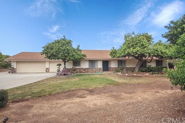 Absolutely beautiful, one story ranch with pool & spa. Open floor plan, lots of light. 4 large bedrooms master with walk in close and sliding door leading to gated pool /spa area. Huge family room has gorgeous corner brick fireplace, bay window with window seat overlooking the gated pool area.... Upgraded kitchen, granite counters, big pantry, stainless steel appliances. A few other extras: Crown molding, recessed lighting, oversized 3 car garage. 45+ fruit producing trees, grape fruit, apple, loquat, persimmon and more, drip system, parking for RV and all your toys. Over one acre all gated.