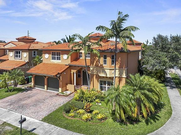 Mediterranean Estate home located in a gated community of Palermo in Venetian Isles. This spacious corner lot home features 4 bedroom and 4 bathrooms plus office/den area that can be used for a multipurpose bonus room. Foyer has elegant custom wood stair case, the first floor also has 1 full bedroom and bathroom with plenty of closet space. This home truly offers it all with an amazing kitchen that has stainless steel appliances, wood cabinets, granite countertops, bar area great for entertaining. The second floor bedrooms each have ensuite bathrooms. Master suite has a private office, den with its own balcony, master bathroom with his and hers and custom made closets. HOA FEE $190/Month