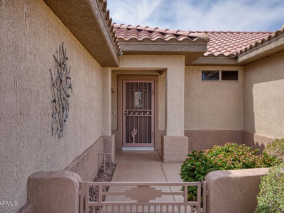 Step into this welcoming Acacia model in Sun City Grand, where comfort meets Arizona charm. Relax in your front courtyard framed by thriving cacti and native plants, or step inside to a flowing great-room design filled with natural light. Inside, the 2 Bedroom, 2 Bath home with the desired open great-room design feels bright and airy with easy-care tile floors. The owner's suite offers a peaceful retreat with a bay window for natural light, a generous walk-in closet, and dual vanities. Outdoors, an extended patio bordered by knee-high walls creates an intimate space—ideal for quiet coffee mornings, lively gatherings, or evenings under the desert sky..