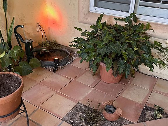 Price REDUCTION..Own a piece of Paradise.You enter this home through a private and covered front courtyard that offers a water feature with a tranquil space to relax and enjoy a morning coffee or to entertain family & friends. Double Entry Doors greet you as you step into this updated home. You have generous size rooms, formal dining room & living room which looks out newer sliding glass door to your personal retreat,& another outdoor covered and partially enclosed patio with an Adobe Fireplace & built-In BBQ. Kitchen has quartz counters, work island & abundance of cabinets. 3 Large Bedrooms, wood flooring, ceiling fans, newer HVAC 2024, sparkling pool, outdoor gazebo,2 car covered carport & 2 car garage , newer roof. Enjoy beautiful sunsets from your resort like backyard