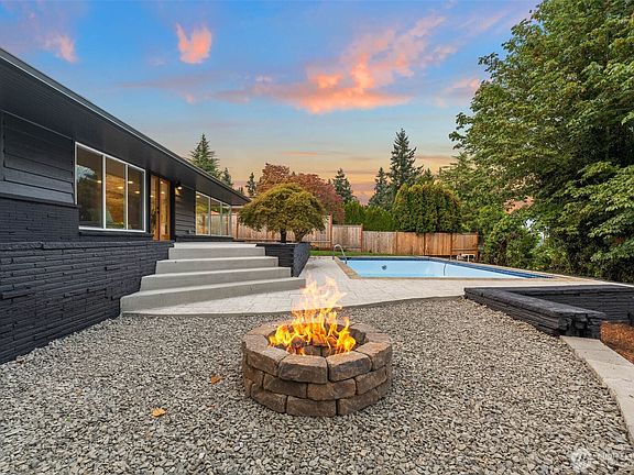 Located in the Sheridan Community of Lake Forest Park, this mid-century modern home offers privacy down a long driveway and serene views of Lake Washington. Fully enclosed by mature landscaping, the property creates a true sense of retreat. Step outside to a large pool and brand-new patio, surrounded by carefully curated gardens, perfect for relaxing or entertaining. Inside, the original brick wood-burning fireplace serves as a striking focal point, highlighting the home’s classic mid-century modern design. The primary suite features a luxurious walk-in shower with dual shower heads and dual sinks. A 1-car garage plus covered carport provide flexibility and convenience, while recent updates- including a new roof - offer peace of mind.
