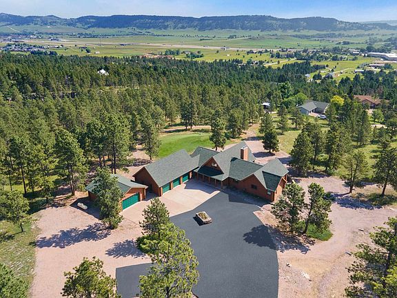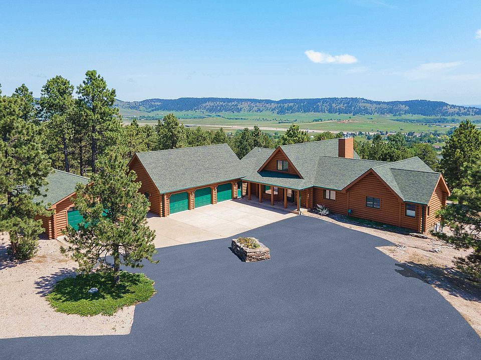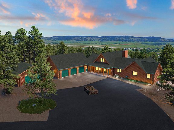 Experience the perfect blend of elevated mountain living and wide-open luxury with this stunning log cabin ranch situated on 3.002 acres. Offering exceptional privacy, this home delivers million-dollar views and no close neighbors—your personal sanctuary in the Black Hills. The spacious layout features 5 bedrooms (2ntc), 2.5 bathrooms, as well as an office and a media room. Soaring vaulted ceilings and warm wood tones create a grand yet inviting atmosphere. A 510 sq ft loft adds even more versatile living space, and with 2,754 sq ft per level, there’s room to relax, entertain, and live comfortably. The kitchen is equipped with a double oven, perfect for hosting or everyday convenience. The primary suite offers both luxury and function with a double vanity in the master bath and two walk-in closets. The office is a really nice feature with view to hills and trees as well as being conveniently located in the house between the front door and the kitchen. The media or TV room has great views and walkout to the deck. Outside, you’ll find an attached insulated 3-car garage, an insulated and heated detached 2-car garage, and a 32x40 pole barn with electricity, concrete floor, and loft—ideal for storage, equipment, or workspace. The home also includes a pool table and a private sauna. Per the covenants, horses and other animals are allowed, giving you flexibility to enjoy the land.