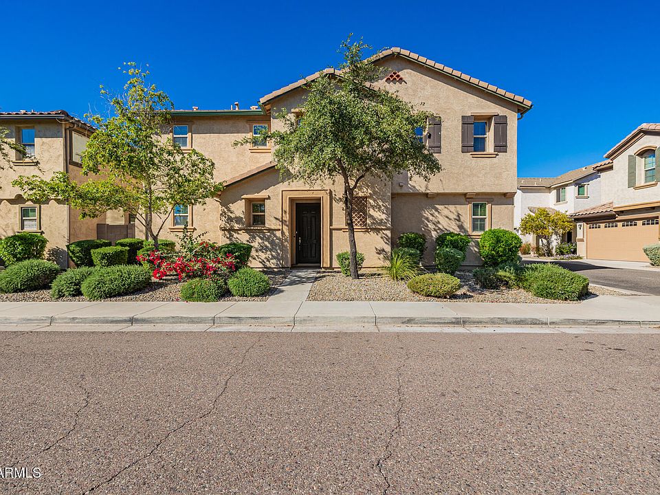 This stunning Great Room floor plan features a spacious loft upstairs and a convenient bedroom with a full bath on the main level. The kitchen showcases elegant 42'' maple shaker cabinets paired with granite countertops. Additional highlights include 9-foot ceilings on the first floor, double doors leading to the master bedroom, surround sound prewiring, home network wiring, and an extended covered patio. The master bath offers dual sinks, a separate tub and shower, while the second bath also features dual sinks. A beautifully crafted wrought iron stair railing completes the stylish design.