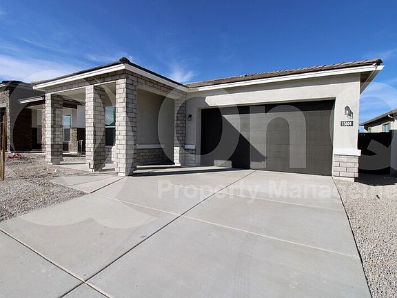 1,697 SQ FT! 4 bedroom, 2 bath home in Tierra Verde West! 2023 build with modern upgrades + smart home features throughout. Desirable single story floor plan! Stunning eat-in kitchen with included appliances, & expansive center island/breakfast bar. Off kitchen dining space! Kitchen opens to spacious family room with sliding door patio access. Great for indoor/outdoor entertaining! Neutral interior with tile flooring in all the right places. This home offers 4 generously sized bedrooms + flexible den space! Den makes great home office/bonus room. Primary suite with full bath + walk-in closet! Blinds. Laundry room with included washer/dryer! Enjoy a low up keep backyard with covered patio. 2 car garage! Tierra Verde West is a well maintained community with playgrounds, & biking/walking trails throughout. Great Surprise location with easy US-60 + Loop-303 access!