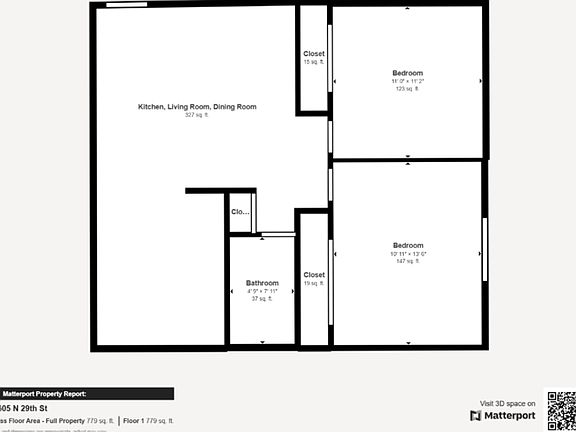 - Total interior livable area: 850 sqft