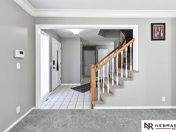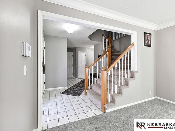 OPEN 4/15 SAT 1-3. You have to check out this charming Chimney Ridge subdivision, 2 story home! Quintessential living w/ towering trees, walking, biking, boating, trails, Walnut Grove park & Lake Zorinsky close by. Large corner walkout lot boasting split upper level has primary suite with spa bath, big WIC, dual vanities 3 bed and full bath to complete the upper level. Main level has formal dining, eat in kitchen, spacious family room, and open seating room. The basement has tons of space for entertaining. Your family can grow in this space and excel in the Millard School district. Expansive windows for glorious light, large private deck, finished walkout, fresh stained cedar privacy fence, tons of flat yard to play, 6+ parking for toys, LOTS NEW to include the electric fireplace, paint, retaining wall, LL bath, exterior paint, main & LL carpet, oven, dishwasher, washer/dryer, new open great room. This is the ONE!