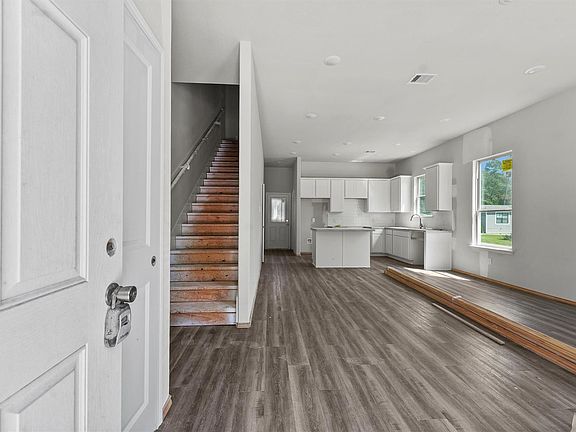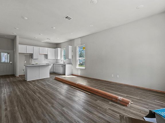 This newly constructed two-story residence features a functional floor plan with 3 bedrooms, 2 1/2 bath. The first floor offers an open-concept design where the kitchen, dining area, and living room share one large continuous space, complemented by a conveniently located half bath. The second floor includes the primary bedroom with its own walk in closet and full bathroom, along with two additional bedrooms that share a separate full bath. Built on a permanent foundation and fully connected to water, electricity, and sewer services, this home combines modern construction standards with a practical layout. Defined living, dining, and private areas provide efficiency and convenience to support a variety of household needs.