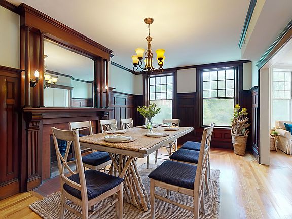 Dramatic ten-foot waterfall islandOriginal woodworkPrivate deck accessFormal dining roomSleek stainless steel appliancesQuartz countertopsSpa-like en-suite bath