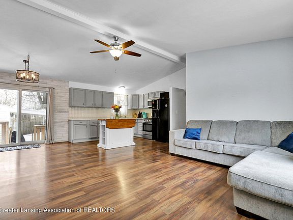 This beautiful 3 bedroom, 2 bath home with a finished lower level is ready to be yours! The open floor plan showcases modern flooring, ample natural light and a stunning kitchen with center island, backsplash and updated fixtures. The finished lower level offers a family room, a second living space for an in-home gym or hobby space, a full bath, and laundry room. With a detached 1/5 car garage, large deck, and covered patio, this is a must-see! Updates include new dishwasher and side deck (2024) water heater 2023 and paint throughout.