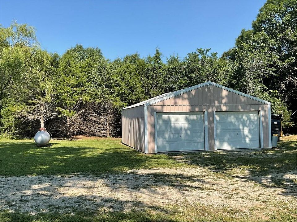 WOW! Check out this building site! Just off I-35 interchange w/only about 1/2 mile of gravel makes this the ideal setting for your dream home! Older home was removed from site but all the set ups are there for you to work with! Septic (Check w/Franklin Co to verify any code requirements ion that) Water well (Water is at well house). Also additional well to the north of garage -could be used for gardens or animal pen.(Rural Water #4 is across the road) Electricity on site - Propane tank included in sale -27'x24' garage w/concrete & electric-Spring fed pond-May need some dam work but great ravine to the east where you could double or triple pond size! Trails thru the heavy timber allow you to easily enjoy the beauty of the nature around you! Follow one of the trails back to a charming little shed with so many possibilities for use! Don't miss out !