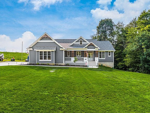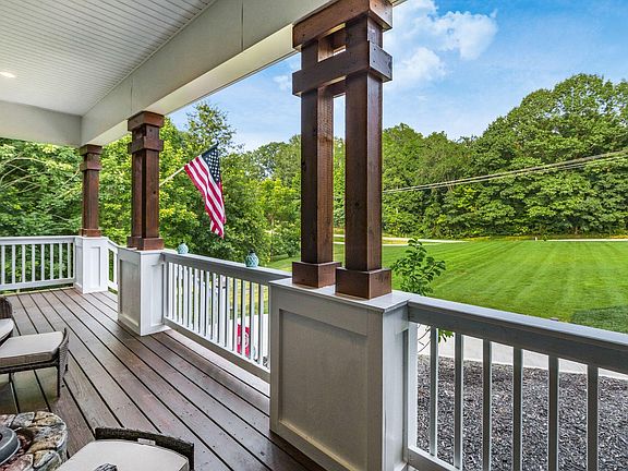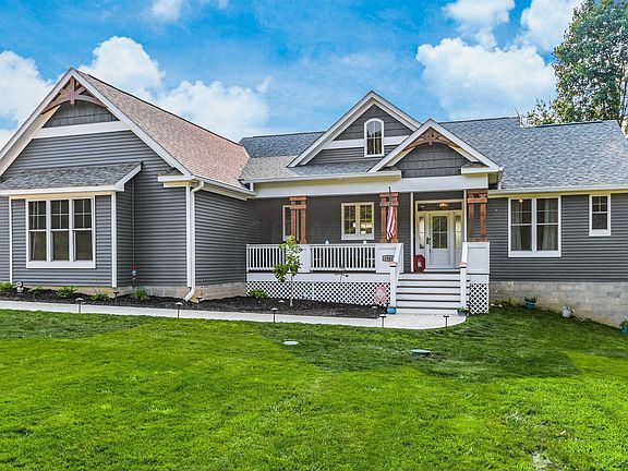 Better-than-new! Nestled on over 4 a. of rolling country side w/mature woods, meandering paths, & open pasture! Features wonderful outdr spaces w/endless views from the front porch & multi-level back porches. The open plan features beautiful wood-look flring stretching throughout the main living spaces w/a stone tile accent in great rm. Lg kit w/granite counters & huge pantry. The great rm features a wall of windows w/glass drs to the back porch from the dining area. Master features private bath w/dual sinks & walk-in closets. 2 other light-filled bedrms on the main level w/a 4th bedrm newly finished in the LL. The walk-out LL features a wall of glass w/new wood-look flring & expansive spaces. The oversized garage features extra storage & opens into the lg mudrm w/custom cubbies.