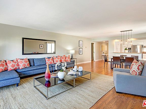 Located in a quiet building in Westwood, this condo offers luxury living in an airy living space. The open-space floor plan is the perfect place to entertain, showcasing the spacious living room and dining area upon entry. The large window and dual entries in the enclosed kitchen create an open feel as you enjoy stainless steel appliances and casual bar seating. The adjacent hallway leads to a stylish master suite with a built-in vanity near the double closets and a comfortable master bathroom, which features a tiled tub, glass-enclosed shower, and dual vanities. Across the hall, enjoy the modern built-in shelving and large closet space in the spacious second bedroom. An open-air balcony connects to the master suite and living room, providing the ideal spot for a quiet read or cup of coffee. With a second full bathroom, built-in washer/dryer, a garage pre-wired for an electric charging station, and lush landscaping, this condo offers California living at its best.