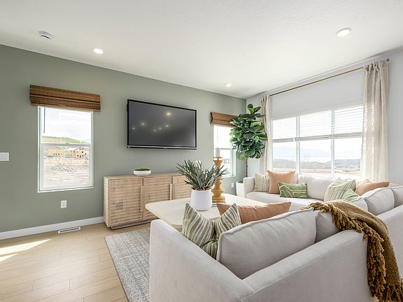 The Valley Canyon Series - 1440 - Res E. Now offering rates as low as 2.99% for the first year of a 3.99% 7/6 ARM (APR 5.770%) when financing through Lennar Mortgage! Estimated completion in October. This home offers 3 bedrooms, 2.5 bathrooms, and an attached 2-car garage, and a full unfinished WALKOUT basement. On the main floor, a spacious kitchen offers white craftsman-style cabinets, quartz countertops, and stainless steel appliances including the refrigerator! Upstairs is the owner's suite with owner's suite bathroom, laundry room, two additional bedrooms, and a full secondary bathroom. Square footage figures are provided as a courtesy estimate only and were obtained from builder. Buyer is advised to obtain an independent measurement. Interior photos are of same style of home, but not the actual home. Rendering is for illustrative purposes only.