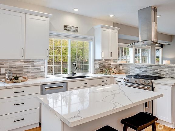 Modern finishesRemodeled kitchenComposite deckCovered seating areaSunny corner lotMarble backsplashHot tub gazebo
