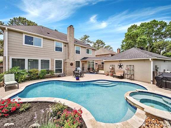 JUST IN TIME FOR SUMMER! GORGEOUS 5 BEDROOM WITH PRIVATE POOL & SPA! Great Location - Low-Traffic Cul-de-Sac! Manicured Exterior - Covered Front Entry! Impressive High Ceiling Foyer! Beautifully Remodeled Island Kitchen - Abundant Shaker-Style Cabinetry + Granite Counters! Stainless GE Appliances (Including Dbl Oven/Convection/Microwave/Warming Drawer & 36" Monogram 6 Burner Gas Cooktop)! Large Family Room - Gas Log Fireplace! Extensive Wood-Look Tile on First Floor! Privately Located First Floor Master Suite - Luxurious Whirlpool Garden Bath with 2 Closets! Enormous Gameroom! Oversized Secondary Bdrms - One w/Wall of Built-In Cabinetry/Desk - Use as Study if Desired! Updated Secondary Baths! Retreat-Style Backyard: Fabulous Heated Pool + Soothing Spa + Extensive Decking! Detached Garage + Driveway Gate! Recent Carpet (2022), Pool Resurface (2020), Roof (2016), Plus More! Established Master-Planned Community w/Amenities Galore - PLUS Easy Access to Hwy 290 & GP 99! Walk to Elem School!